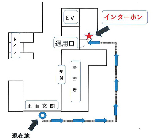お手数ですが正面玄関右奥の通用口の利用をお願いいたします。