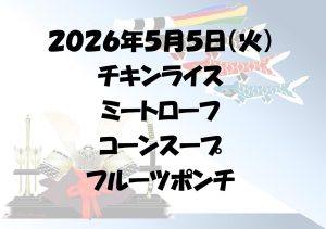 5月の端午の節句はチキンライス、ミートローフ、フルーツポンチ、コーンスープを予定しています。
